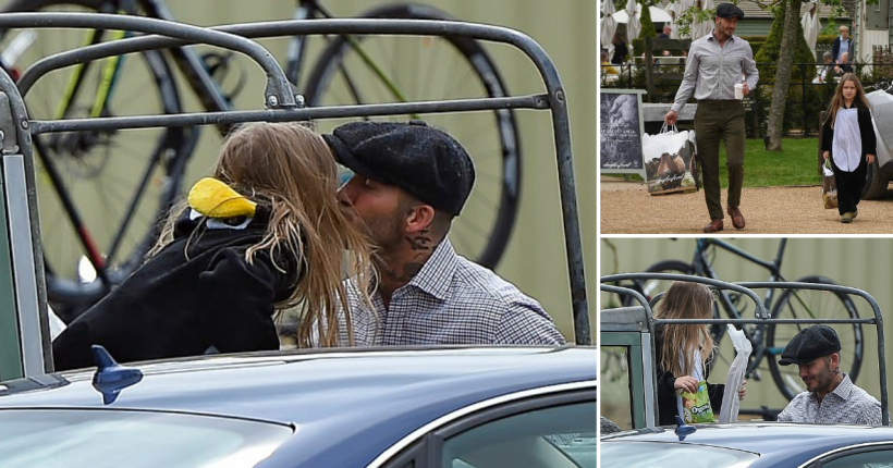 43-годишниот поранешен фудбалер беше уловен од папараците додека пазаруваше органска храна со слатката ќеркичка Харпер. 6-годишното девојче беше облечено во костим-пингвин додека му помагаше на татко си да ги однесе купените производи во возилото.