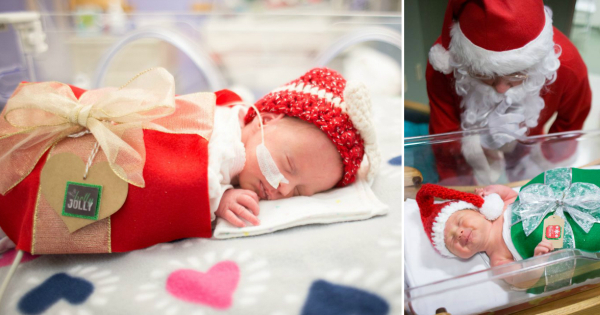 Тие ги облекоа најмалите пациенти како новогодишни подароци и им направија слатка фотосесија со Дедо Мраз за да го прослават нивниот прв Божиќ. Повеќе од 30 бебенца беа „завиткани“ и украсени за да им измамат насмевки на своите родители, кои се подготвуваат да ги поминат новогодишните и божиќните празници во болница.