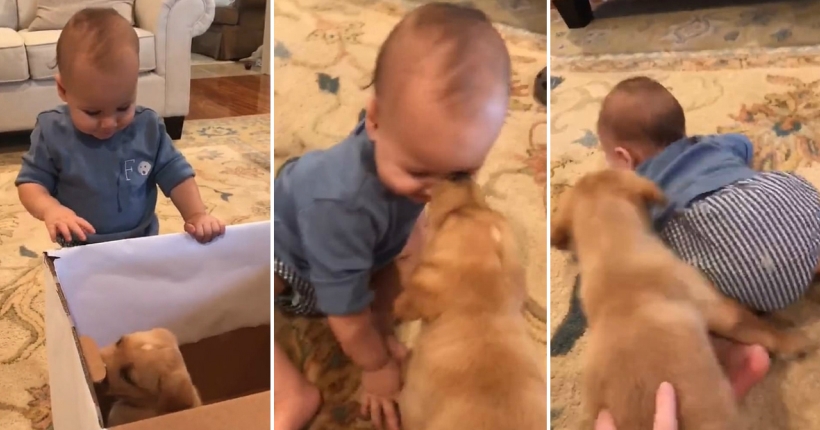 Живееме во време кога сè попотребни ни се позитивни моменти кои поттикнуваат насмевки, а првата средба на слатко бебе со неговиот нов најдобар пријател е токму тоа.