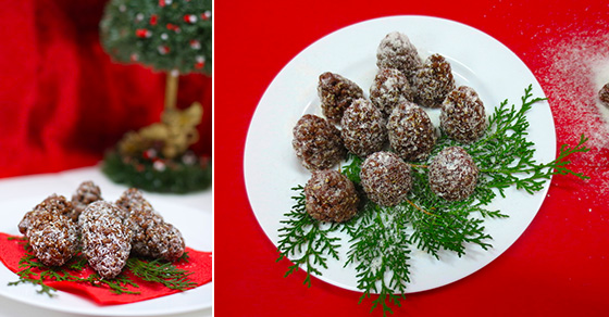 Предлог декорација: Поросете ги колачите со кокос пред да ги ставите во фрижидер за да добиете вкусни снежни шишарки.