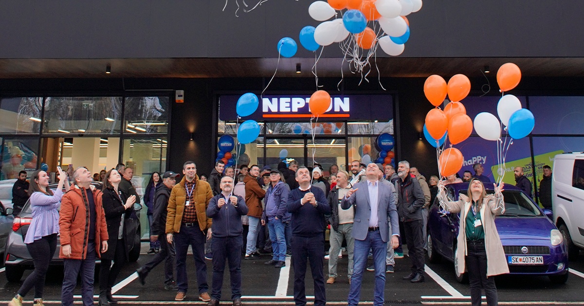 Со свечено отворање декември 2023, Нептун Македонија претстави две продавници со комплетно нов изглед. Едната во главниот град Скопје, адреса: Перо Наков бр. 108 – Ретаил Парк ГОДИ, Гази Баба; другиот објект во градот Охрид, иста локација ул.„15-ти Корпус“,бр.45А со нов премиум изглед. Присуствуваа стотици заинтересирани граѓани, професионалци, претставници од компаниите и од брендовите во Нептун, како и следбеници на најновите трендови, дојдени да уживаат во новата технолошката оаза блиску до нив. Ги пречека широк асортиман на производи, докажана услуга, поволни цени, одлични услови за плаќање, но и супер забава со ДЈ, изненадувања, попусти до 50%, подароци, ексклузивни понуди, ДВОЈНО повеќе поени на haPPy картичката и бројни други поволности.