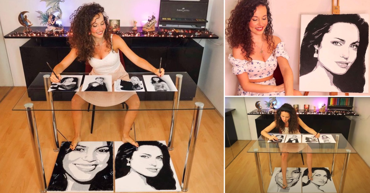 Младата Холанѓанка може да црта со раце и со нозе истовремено и создава ултра реалистични портрети.