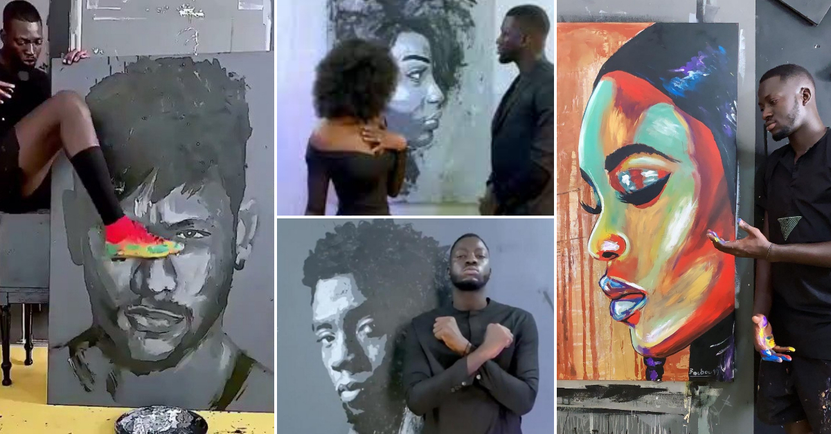 Импресивниот артист од Сенегал користи сè освен уметничка четка за да слика на платно. Со помош на различни предмети, тој создава слики наопаку, а откако ќе ги преврти предизвикува лавина од комплименти од неговите обожаватели. На Instagram, работата на Bou Bou Design ја следат повеќе од 2,7 милиони лица.