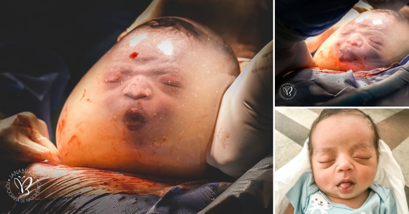 Фотографии од бебенце кое се роди во непробиена амнионска обвивка станаа хит на социјалните мрежи.