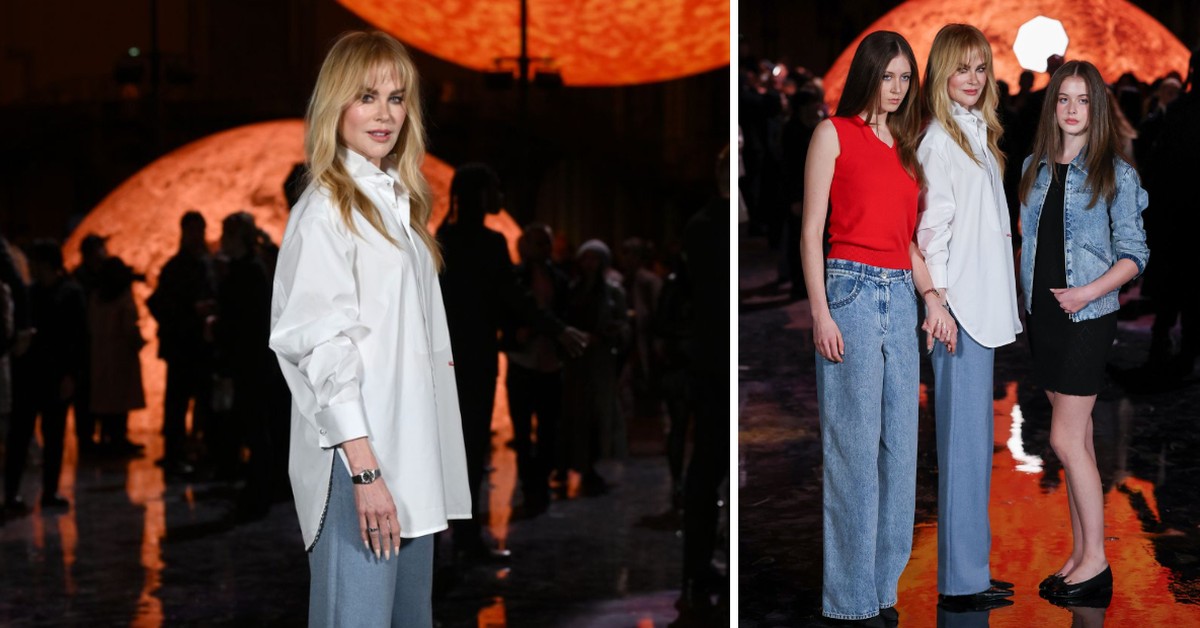 58-годишната актерка присуствуваше на ревијата на Шанел за пролет/лето 2026, каде што ја изненади јавноста со нов изглед и свежа фризура со шишки. Никол изгледаше беспрекорно во широка бела кошула и сини панталони, кои ги комбинираше со елегантни црни потпетици. Целиот стајлинг делуваше едноставно, модерно и со доза на париски шик.