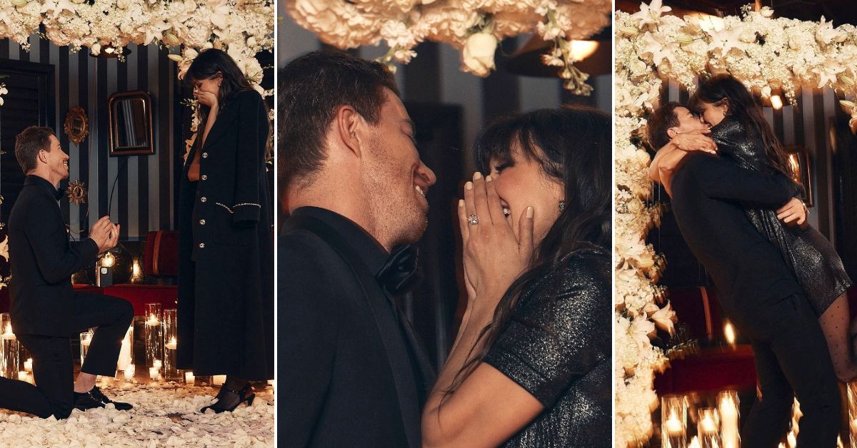 Парот сподели фотографии од романтичниот момент и од дијамантскиот прстен од 5 карати од Lorraine Schwartz, а Нина напиша: „Почивај во мир дечко, здраво веренику“.