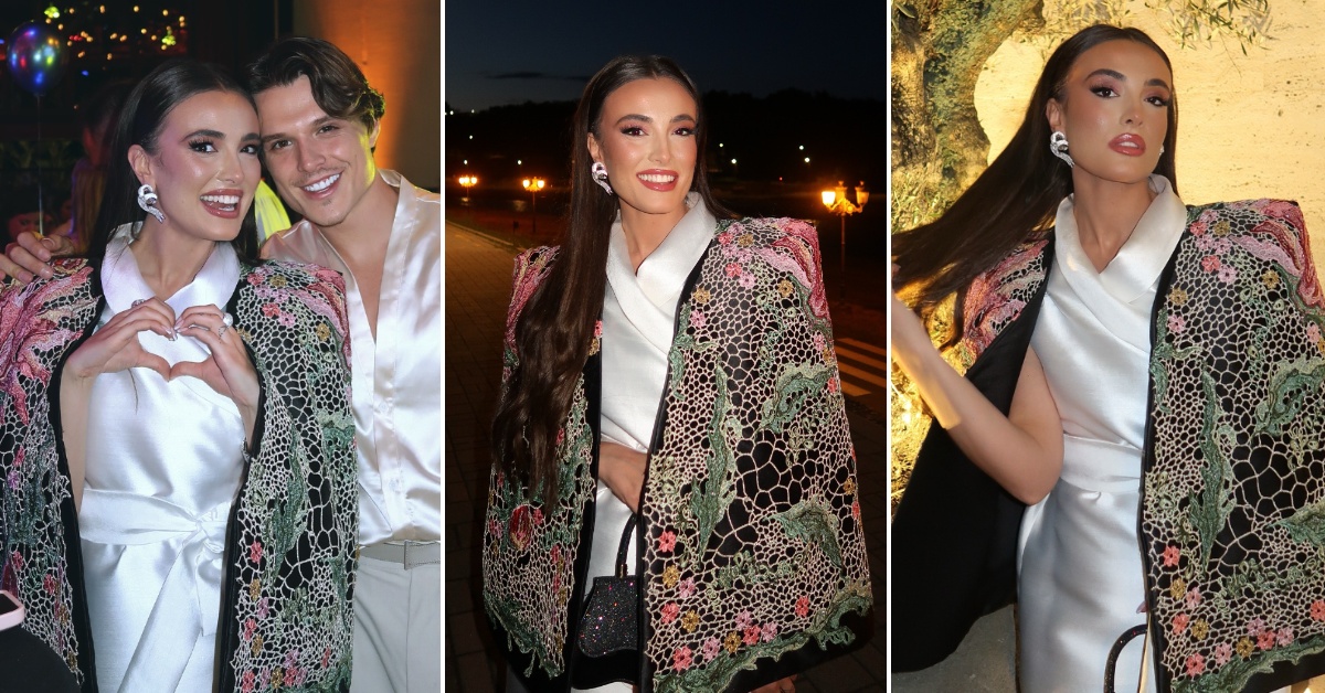 Македонската водителка и Instagram ѕвезда се дотера во стајлинг со впечатлива цветна наметка и бел фустан од македонскиот бренд A2 на Анастасија Атанасовска, а ја покажа и новата фризура со надградба на коса.