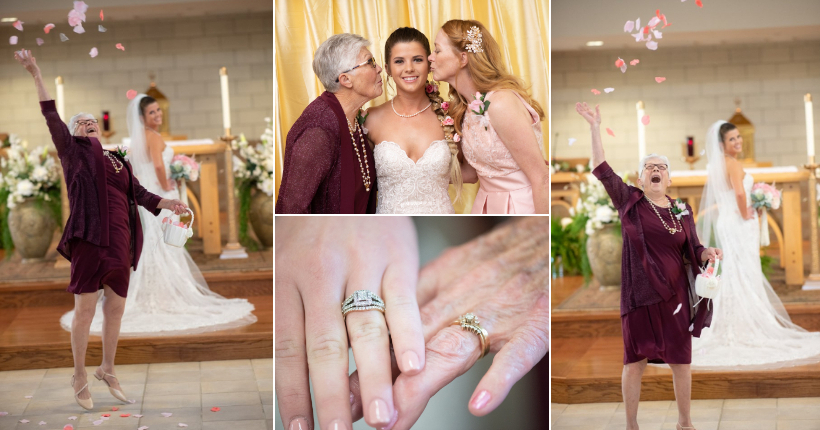 86-годишната старица била поканета на свадбената прослава на внуката Брена како специјална гостинка. Нејзе ѝ била доделена задачата да фрла цветови пред олтарот, а таа со задоволство ја прифатила. Фотографиите се доказ за тоа.