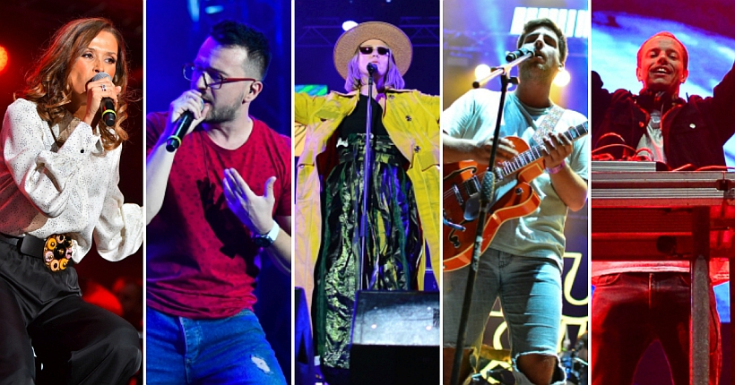 Низ фотографии: Настапите на Каролина, Лозано, Фанк Шуи, Рошин Марфи и Але Фарбен на „A1 World of Music“