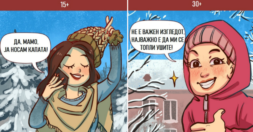 Илустрации прикажуваат колку многу се менуваат нашите ставови кон секојдневните ситуации со возраста:
