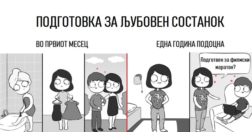 Низ илустрации: Љубовната врска во првиот месец vs. Љубовната врска една година подоцна
