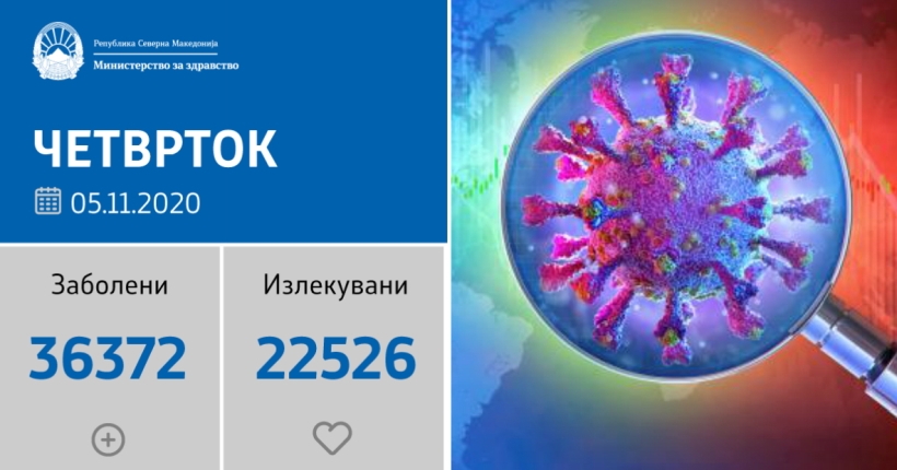 Вкупната бројка на ковид дијагностицирани во нашата земја од почетокот на епидемијата изнесува 36.372, бројката на оздравени пациенти е 22.526, на починати е 1.084, а бројот на активни случаи изнесува 12.762.