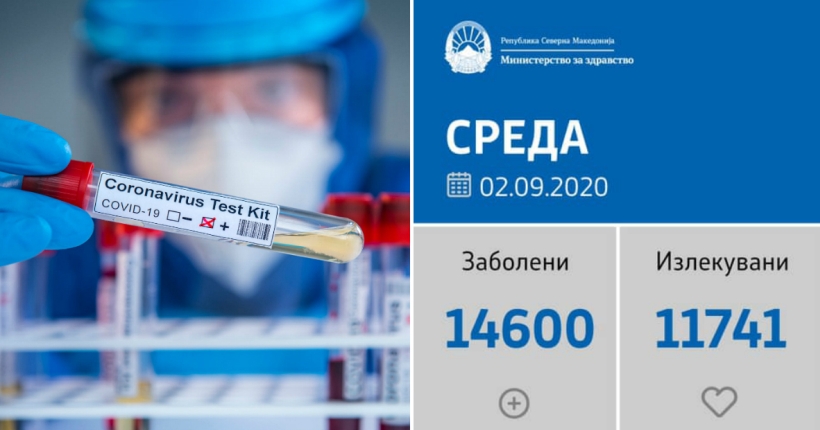 Вкупната бројка на ковид дијагностицирани во нашата земја од почетокот на епидемијата изнесува 14.600, бројката на оздравени пациенти е 11.741, на починати е 606, а во моментов бројот на активни случаи во земјата изнесува 2.253.