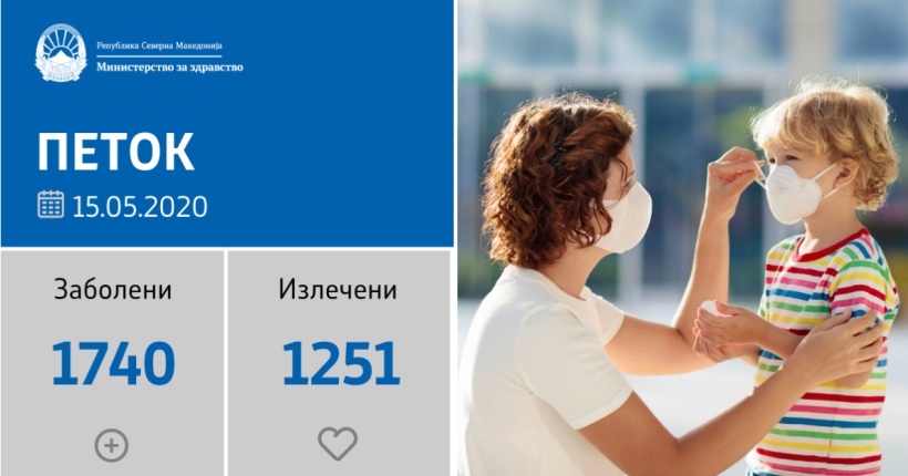 Вкупната бројка на дијагностицирани со КОВИД-19 во нашата земја од почетокот на епидемијата изнесува 1.740, бројката на оздравени пациенти е 1.251, на починати е 97, а во моментов бројот на активни случаи во земјата изнесува 392.