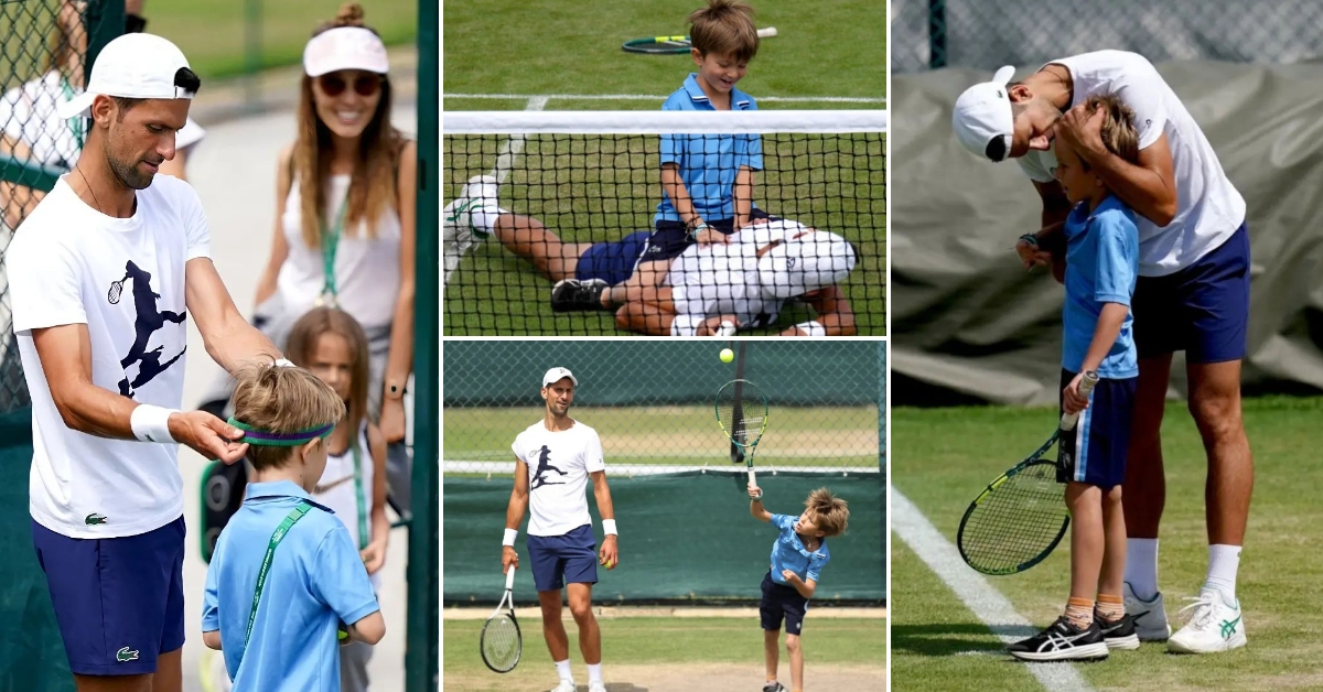 Новак Ѓоковиќ беше фотографиран додека тренираше и се забавуваше со синот Стефан на Вимблдон.
