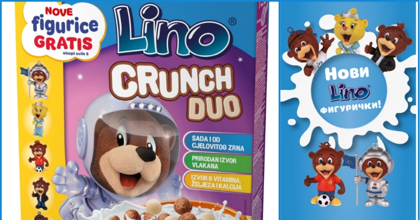 Магичниот Лино свет на игри, дружење и добра забава сега станува уште позабавен! Покрај тоа што се фини и вкусни, Lino Crunch 225g, duo Lino Crunch 225g, Lino Njammy 275g, Lino Pillows milk 250g и Lino Pillows nougat 250g содржат и изненадувања за сите - нови Лино фигури. Во секое пакување има по една од фигурите од новата серија: Лино астронаут, Лино фудбалер, Лино фраер, Лино пеач или Лада принцеза.