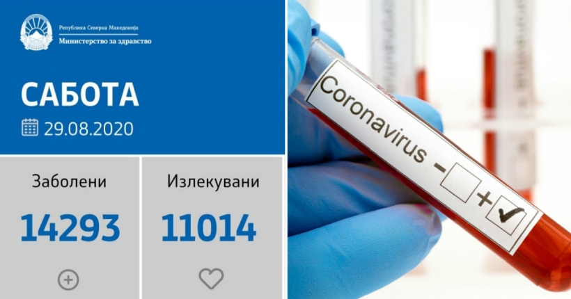 Вкупната бројка на ковид дијагностицирани во нашата земја од почетокот на епидемијата изнесува 14.293, бројката на оздравени пациенти е 11.014, на починати е 596, а во моментов бројот на активни случаи во земјата изнесува 2.683.