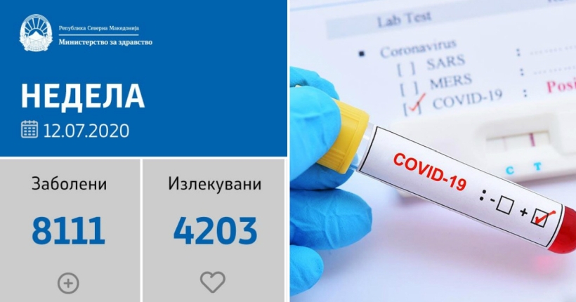 Вкупната бројка на дијагностицирани со КОВИД-19 во нашата земја од почетокот на епидемијата изнесува 8.111, бројката на оздравени пациенти е 4.203, на починати е 382, а во моментов, бројот на активни случаи во земјата изнесува 3.526.