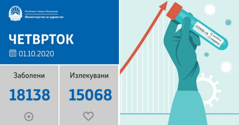 Вкупната бројка на ковид дијагностицирани во нашата земја од почетокот на епидемијата изнесува 18.138, бројката на оздравени пациенти е 15.068, на починати е 743, а во моментов бројот на активни случаи во земјата изнесува 2.327.