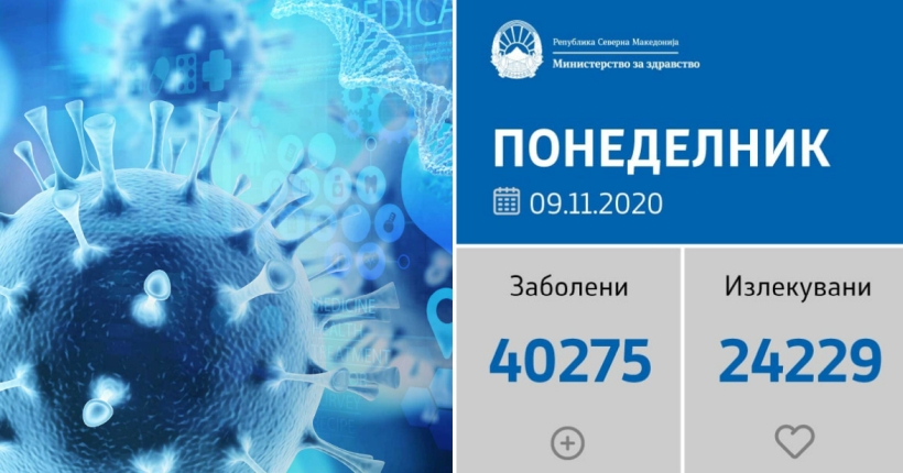 Вкупната бројка на ковид дијагностицирани во нашата земја од почетокот на епидемијата изнесува 40.275, бројката на оздравени пациенти е 24.229, на починати е 1.156, а бројот на активни случаи изнесува 14.890.