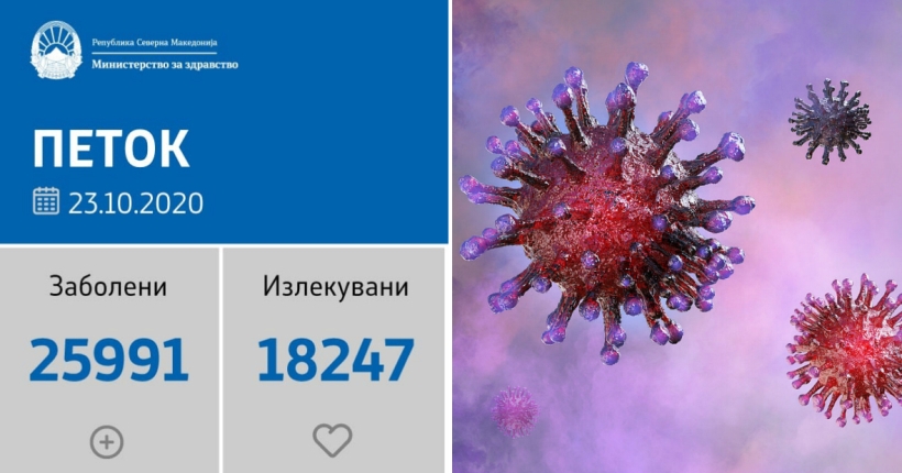 Вкупната бројка на ковид дијагностицирани во нашата земја од почетокот на епидемијата изнесува 25.991, бројката на оздравени пациенти е 18.247, на починати е 883, а во моментов бројот на активни случаи во земјата изнесува 6.861.