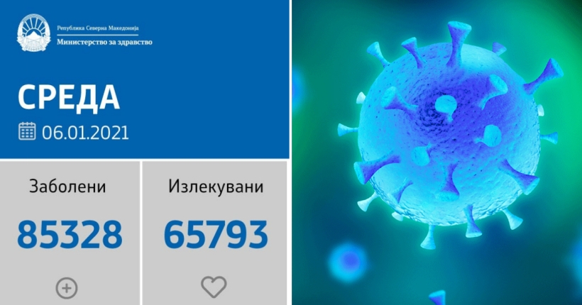 Вкупната бројка на ковид дијагностицирани во нашата земја од почетокот на епидемијата изнесува 85.328, бројката на оздравени пациенти е 65.793, на починати е 2.571, а бројот на активни случаи изнесува 16.964.