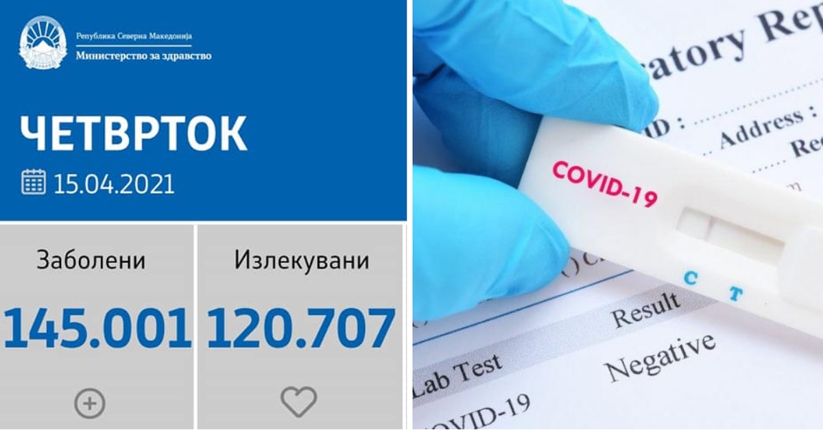 Вкупната бројка на КОВИД-дијагностицирани лица во нашата земја од почетокот на епидемијата изнесува 145.001, бројката на оздравени пациенти е 120.707, на починати е 4.357, а бројот на активни случаи изнесува 19.937.