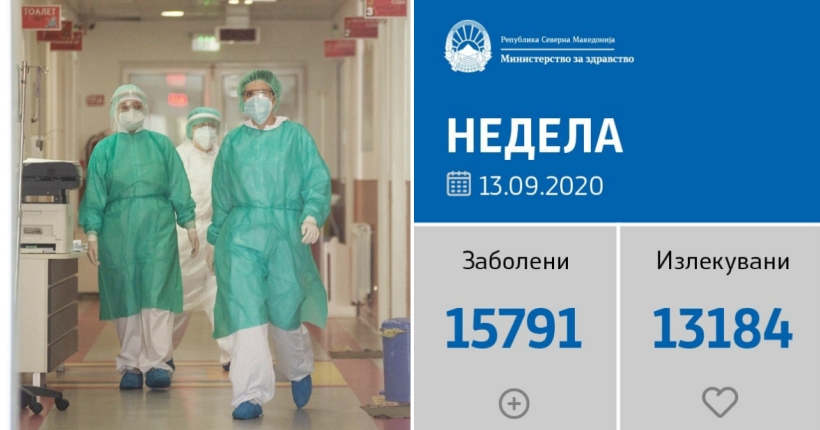 Вкупната бројка на ковид дијагностицирани во нашата земја од почетокот на епидемијата изнесува 15.791, бројката на оздравени пациенти е 13.184, на починати е 648, а во моментов бројот на активни случаи во земјата изнесува 1.959.