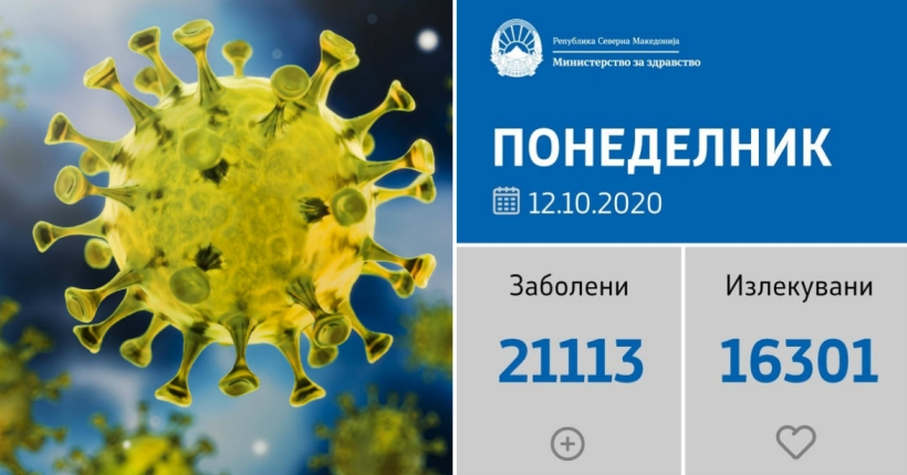 Вкупната бројка на ковид дијагностицирани во нашата земја од почетокот на епидемијата изнесува 21.113, бројката на оздравени пациенти е 16.301, на починати е 797, а во моментов бројот на активни случаи во земјата изнесува 4.015. Денес се евидентира еден контролен тест.