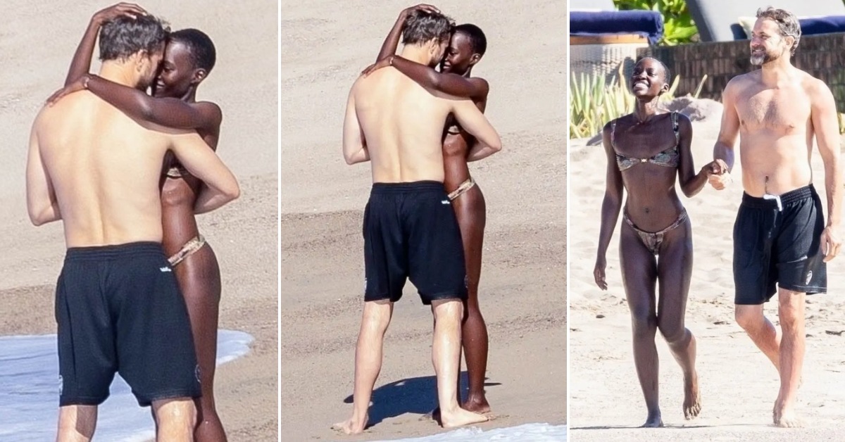 Славниот пар беше уловен од папараците на плажа во Мексико, каде го прославуваше нејзиниот 41. роденден. Актерката од „Black Panter“ го покажа тонираното тело во бикини. Таа го прегрнуваше и држеше за рака саканиот додека шетаа по песочната плажа.