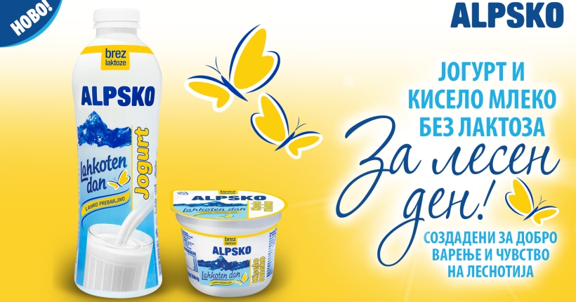 Во текот на изминатата година потрошувачите беа едуцирани, а нивото на интерес и информираноста за интолеранцијата на лактоза се подигна на високо ниво. Оваа година, новите производи на Алпско, киселото млеко и јогуртот без лактоза, им даваат нова опција на сите оние кои патат од интолеранција на лактоза. Создадени од свежо млеко без лактоза и 1,5% млечни масти, тие претставуваат совршена рамнотежа од слатко-киселкаст вкус и се одлични во комбинација со овошје, житарки и вкусни пецива.