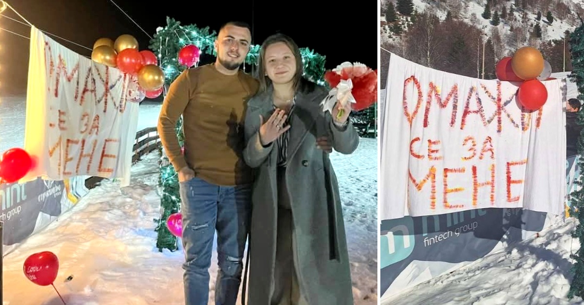 Новогодишен предлог за брак се случи во ски центарот „Стрежево“. Битолчанецот Борис ја запроси саканата Николина на планина токму на новогодишната ноќ.