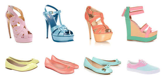 Облечете се во пастелни нијанси од глава до пети и нема да направите модна грешка оваа сезона. Сладоледните нијанси на жолтата, сината, розовата, зелената, портокаловата или бојата на ментол ги обоија и новите обувки. Пастелните обувки ќе ја истакнат нежноста на вашиот изглед, без да делуваат монотоно или здодевно.