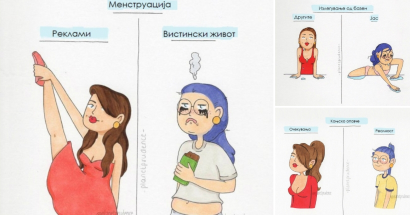 Женските очекувања неретко се разминуваат со реалноста, а илустраторката Пруденс вешто го доловува тоа во своите илустрации.