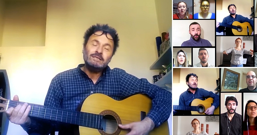 Заедно со членови на академскиот хор „Мирче Ацев“, македонскиот пејач ја отпеа популарната песна од изолација.