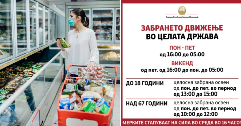 За лицата над 67 годишна возраст се забранува движењето во текот на сите работни денови, од понеделник до петок, освен во периодот од 10:00 до 12:00 часот.