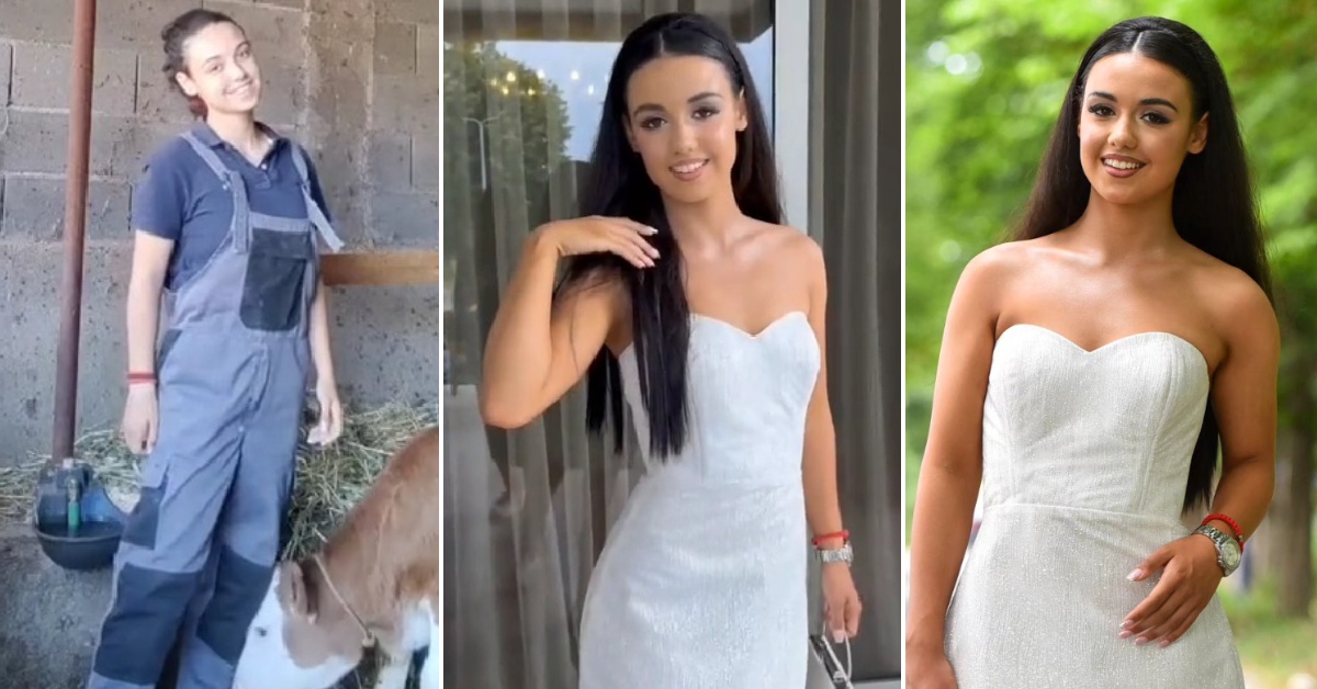 15-годишната девојка, која по часовите се грижи за кравите, објави TikTok видео во кое прво се појавува во штала, а потоа во свечен фустан. Во видеото, Анѓелија прво се снима во работната облека во која се грижи за кравите, а веднаш потоа покажува како изгледа дотерана на својата полуматура.
