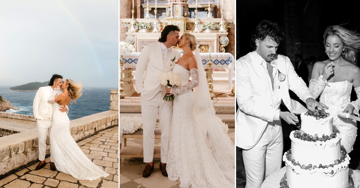 На една од фотографиите, младенците позираат во Дубровник додека зад нив се гледа виножито.