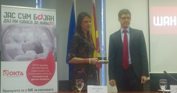 Компанијата ОКТА ја доби наградата Најдобра социјално одговорна практика за кампањата „Шанса за живот“.