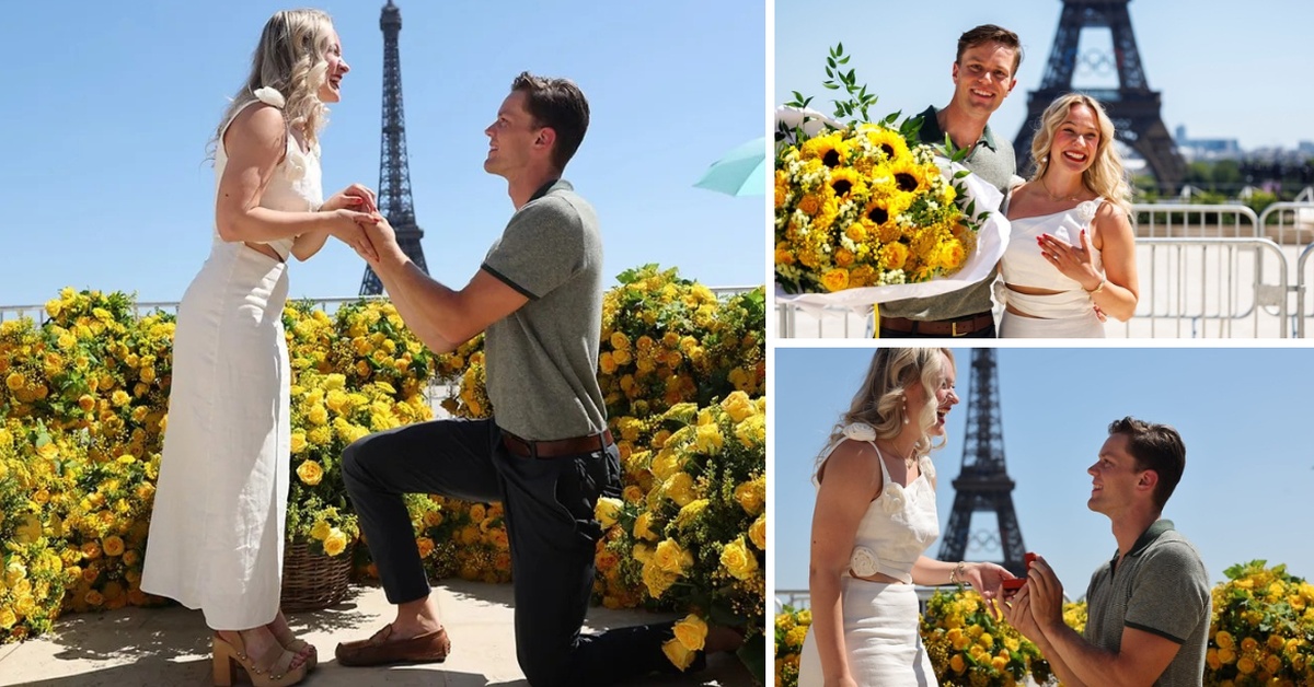 Среќниот Американец ја запроси девојката Лејни Данкан во емисија во живо во Париз, додека во позадина се гледаше Ајфеловата кула.