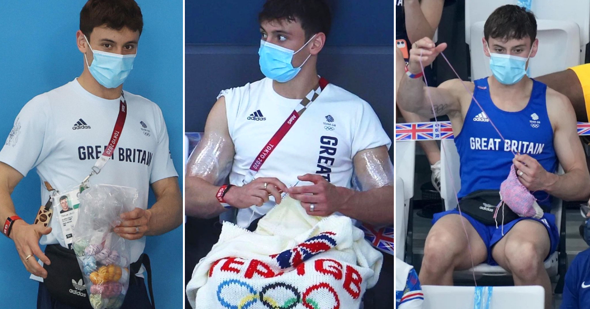 Станува збор на Том Дејли, кој пред неколку дена освои златен медал во дисциплината синхронизирани скокови во вода. 27-годишниот британски пливач двапати беше снимен како плете на трибините додека ги следеше финалињата во машка и женска конкуренција на скок во вода од три метри.