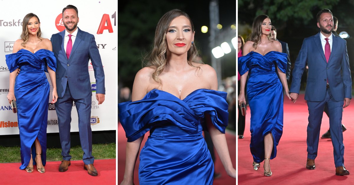 Талентираната актерка, која до почетокот на оваа година беше директорка на Центарот за култура-Битола, изгледаше отмено на црвениот тепих облечена во кралско сина сатенска креација.