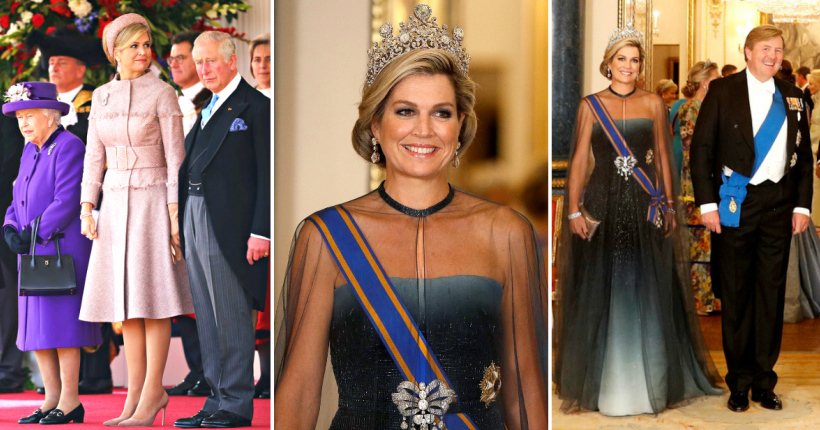На крајот од денот, членовите на холандското кралско семејство присуствуваа на државен банкет во Бакингемската палата. За таа важна пригода, кралицата Максима избра креација од Jan Taminiau. На главата, таа ја носеше препознатливата тијара Стјуарт, која содржи син дијамант од 39,75 карати.