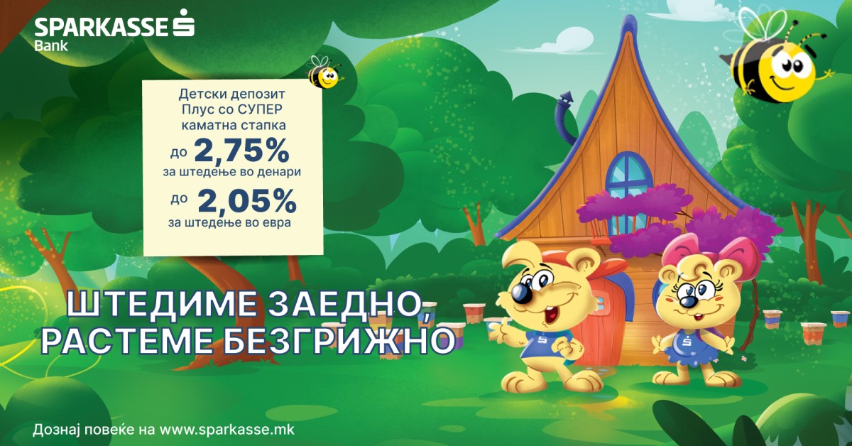 Дополнително, Шпаркасе Банка воведува промотивни каматни стапки за Детски депозит Плус со следните услови: