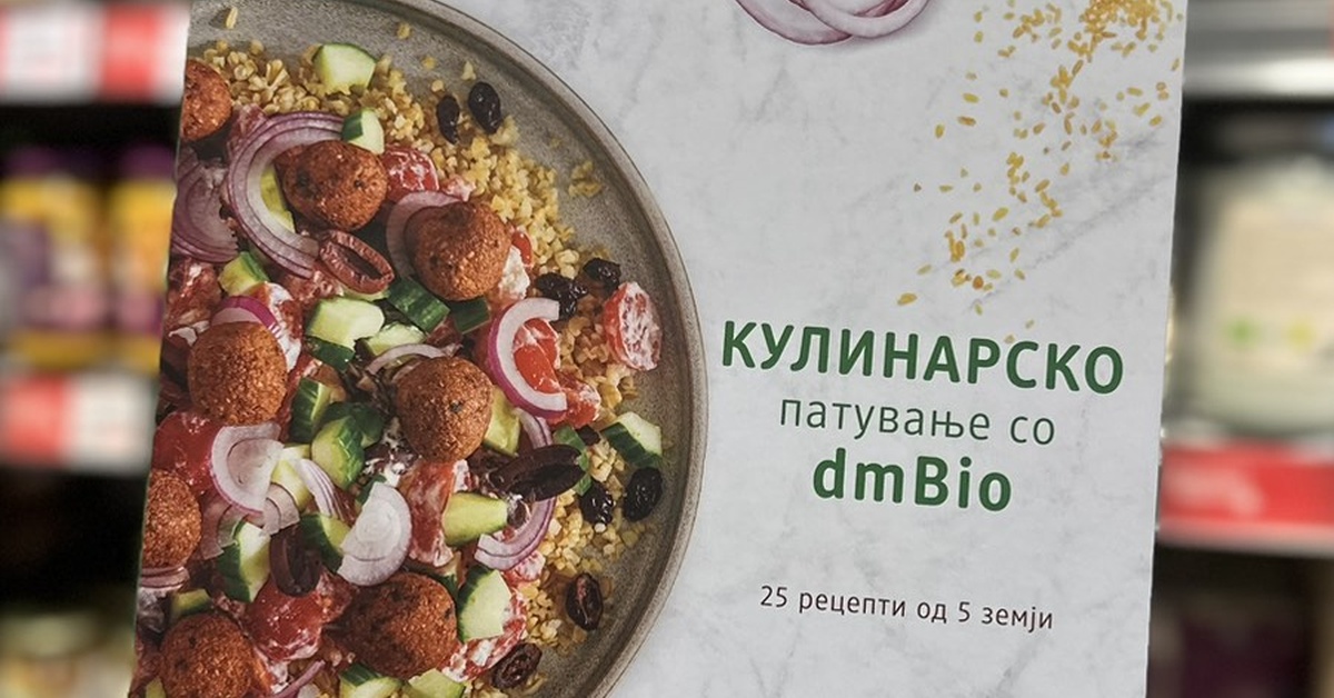 Книгата „Кулинарско патување со dmBio“ содржи брзи и вкусни рецепти за подготвување на оброци од органски производи, која купувачите можат да ја добијат со купување на омилените органски производи во која било dm дрогерија. Понудата важи од 3.2 до 16.2, односно до истекот на залихите.