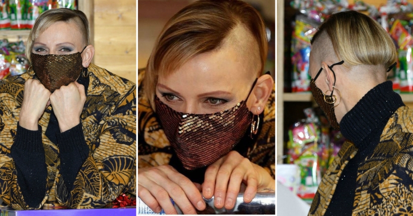 На празничен настан во палатата во Монако, 42-годишната Принцеза се појави со панк рок асиметрична фризура со делумно избричена глава.