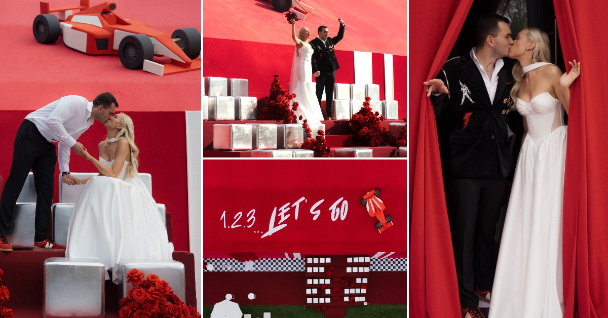 Виталина Виталевна и нејзиниот избраник Никита ја пренесоа возбудата од тркачката патека пред олтарот, создавајќи црвено-бела приказна во Москва. Седиштата во форма на метални коцки додадоа пит-стоп шмек, додека аранжманот на масите наликуваше на вистинска тркачка патека.