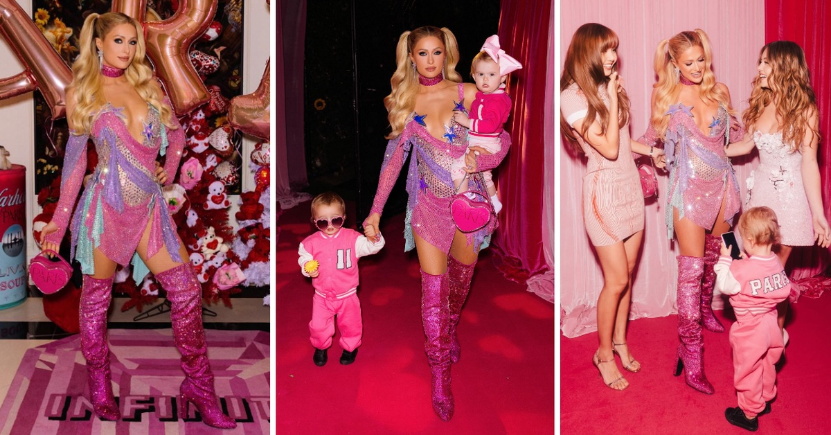 На „розовата“ прослава, русокосата Американка пристигна со своите две мали деца, синчето Феникс и ќеркичката Лондон, а потоа се веселеше со бројни славни пријатели и пријателки.