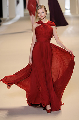 Боите на облеката како да го поделија шоуто на неколку дела. Сè започна со незаменливата црна боја, а продолжи со креации во црвена, бордо, пурпурна, сива, боја на слонова коска и заврши повторно со црно. Еднобојните креации се менуваа и можеа да се видат едноставни фустани со должина до колена, сукњи тип „молив“ во комбинација со крзнени јаки или палта, долги свечени тоалети со висок шлиц. Само неколку креации беа дезенирани со цветни мотиви. Сè на сè, ова е уште една ултра женствена колекција на 46-годишниот дизајнер.
