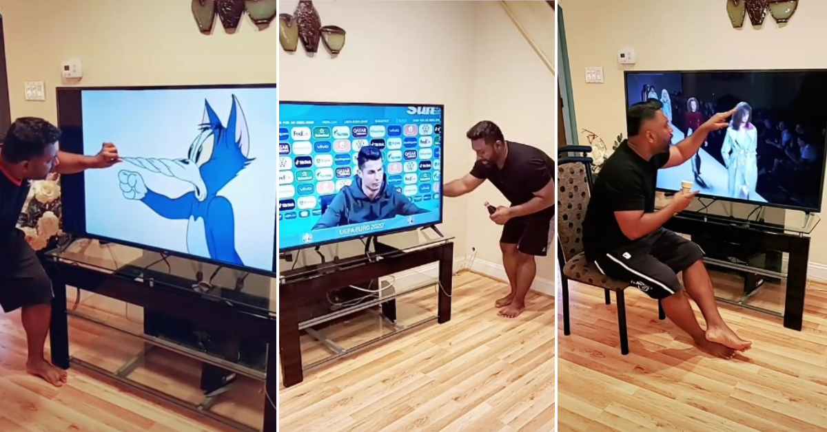 Маж создава забавни видеа со помош на својот телевизор и расположува милиони лица низ светот.